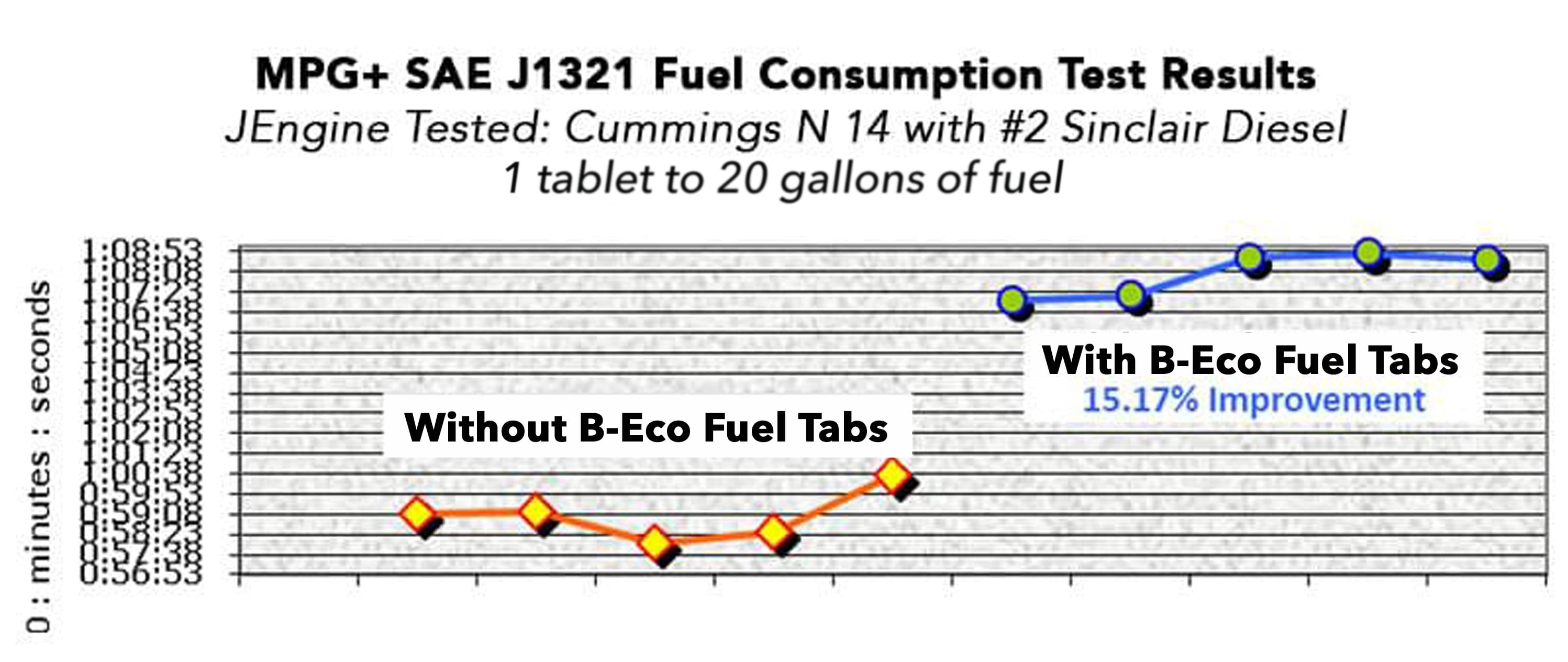 Large trucking fleets, equipment rental companies, fishing boats, oil & gas companies, and other commercial and industrial customers have been successfully using the B-Eco Fuel Tab technology for years. Why? Because they experience significant fuel savings, less carbon buildup in their engines, less smoke out the tailpipe, less water and algae contamination, and less wear in their injectors and upper cylinders. In short, better performance and lower maintenance costs.